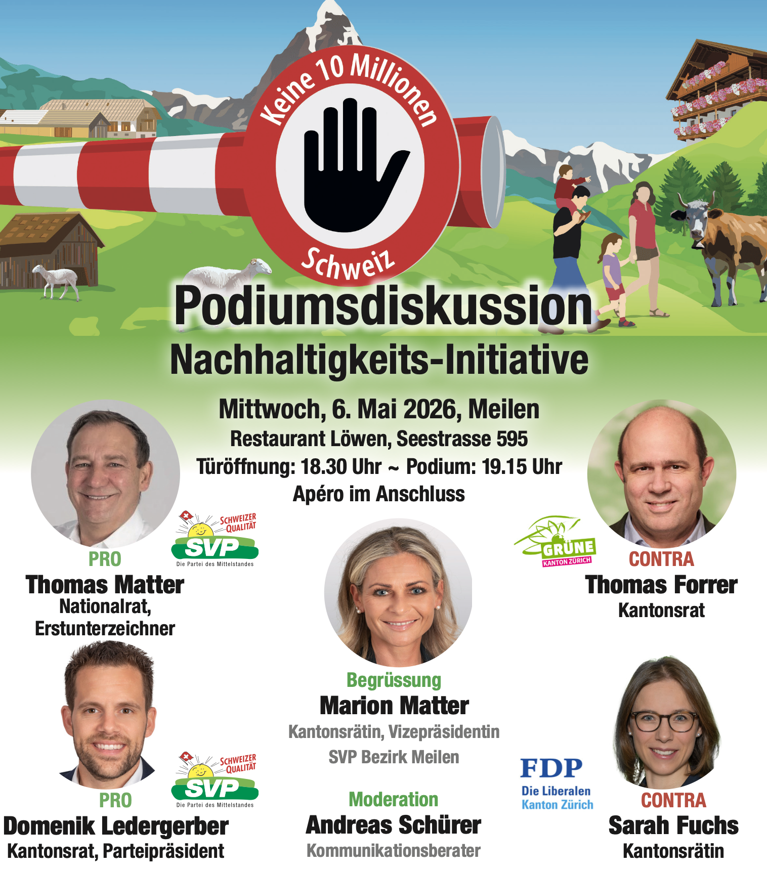 Jetzt informieren: Podiumsdiskussion zur Nachhaltigkeitsinititative in Meilen am 6. Mai